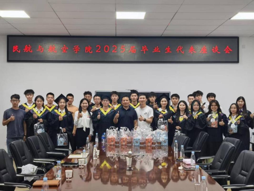2025年6月13日下午,民航与航空学院在公教楼355会议室举行2025届毕业生座谈会。学院党委书记朱兴东、党委副书记马思锐、学工办主任主任、毕业年级辅导员与2025届毕业生代表齐聚一堂,共话学业成长,同绘发展蓝图。座谈会由学院党委副书记马思锐主持。在温馨而轻松的氛围中,毕业生们深情回顾在校求学历程,积极为学院发展建言献策。