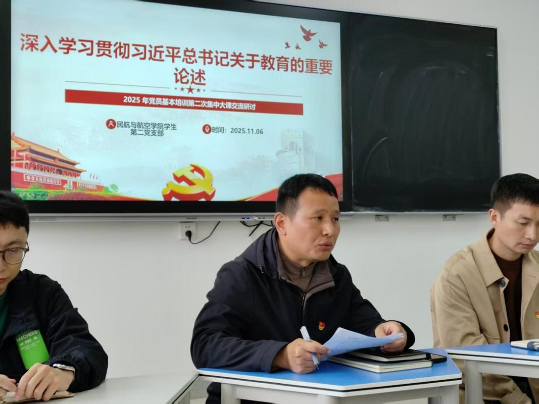 2025年11月6日下午,民航与航空学院学生第二党支部在公教楼328组织召开十一月主题党日活动,本次主题有两个,一是交流研讨“深入学习贯彻习近平总书记关于教育的重要论述”,做有理想、负责任的行动主义者,为学校决战冲刺“双一流”创建、加快教育强国强省建设贡献力量”。二是“学深悟透全会精神,凝心聚力共谋发展”—学习贯彻党的二十届四中全会精神暨“我为发展献一策”。本次会议特邀民航与航空学院党委副书记马思锐同志及研究生党支部书记雷俊杰同志参加,会议由学生第二党支部书记徐良同志主持,支部全体在校党员参加。会议传达学习贯彻党的二十届四中全会精神,全体党员同志围绕学习内容进行交流发言。